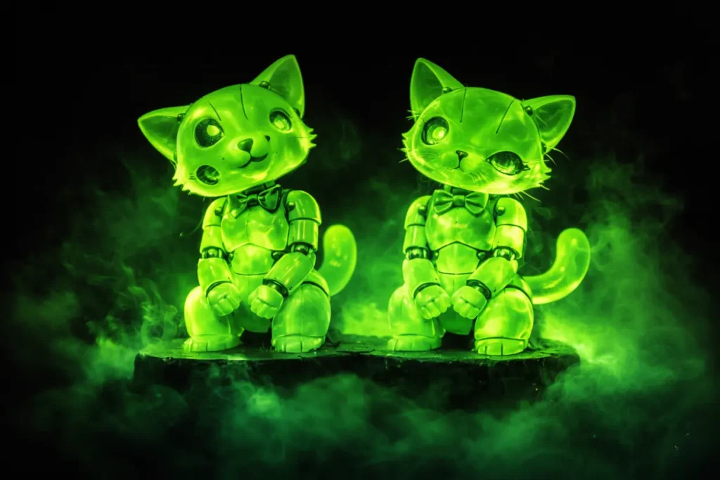 15 de Azrael de 1790 — Camaradas adictos a la animación: es real. Abramelin Computer Systems [1] ha revelado oficialmente una línea “premium” de figuras “embrujadas” inspiradas en Eric y Stella, los felinos de dibujos animados estrella absoluta de Yutu Omni-Media; prometen movimiento mecatrónico híper fluido, capas de realidad aumentada y un gancho sobrenatural que va muchísimo más allá del simple marketing tétrico.
