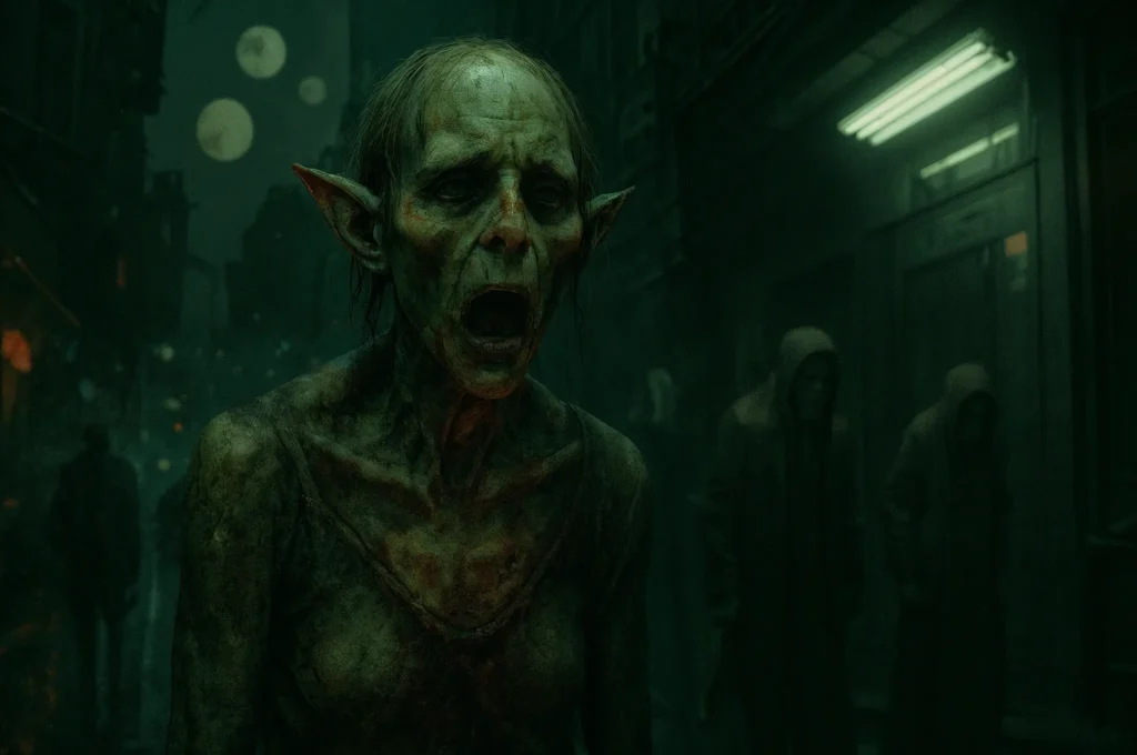 El brote del “Síndrome del Vampiro Enloquecido” está saturando con rapidez las instalaciones médicas de la capital, con ciudadanos que presentan síntomas necróticos y fiebre abrasadora (Crédito: Kenomitian).