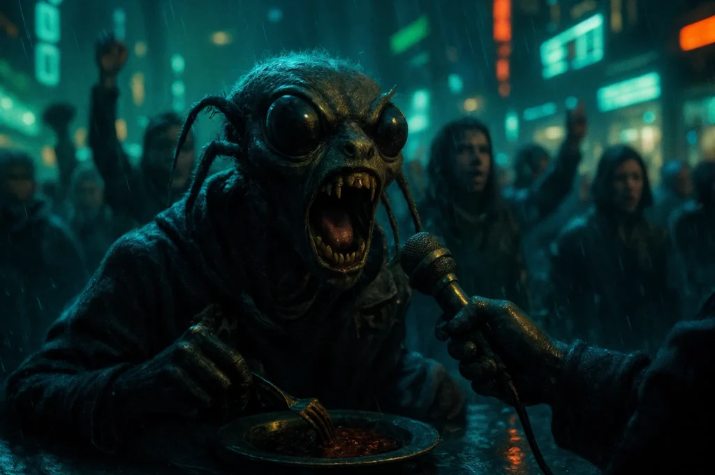 La indignación pública crece a medida que la ciudadanía protesta contra la prohibición temporal de las prácticas hemófagas sagradas; “Nuestra fe está siendo hambrienta”, clama un manifestante (Crédito: Kenomitian).