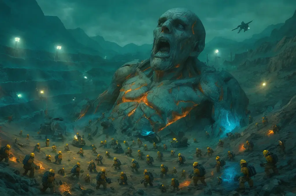 La entrada de los Gigantes—seres pétreos como los Ylidheem—añadió otra dimensión grotesca. La Ceraunia, su subproducto, neutraliza los metales Arali y es esencial para estabilizar motores taumatúrgicos. Minar a estos colosos significa arrancar fragmentos de sus propios cuerpos, a menudo mientras los Gigantes aún viven. Fuentes describen “subastas de derechos sobre cadáveres” en San Orfeo, donde la propiedad de órganos de Gigantes o de su conciencia persistente se negocia como futuros de ganado.