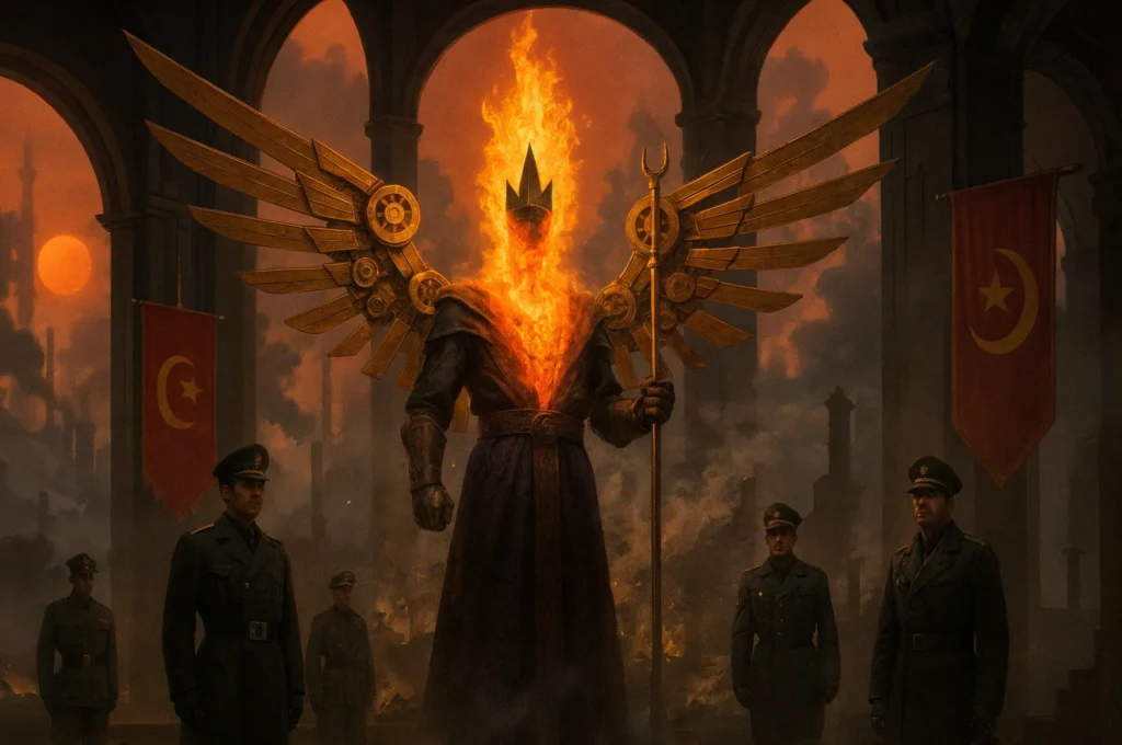 El Oriente Turanio, una región marcada de forma perpetua por la guerra, ha vuelto a sufrir un seísmo en su brutal paisaje geopolítico. En el corazón de esta nueva conflagración se alza el Califato Uróboros, una potencia expansionista y ferozmente tradicionalista. Unificado bajo una doctrina altifanista única y reverenciando a Cthugha, el Soberano Supremo [3], el Califato —dirigido por el formidable califa Dânêl— encarna una doctrina de dominio sin concesiones. Su maquinaria militar Dieselpunk, infame por la política de “sin prisioneros” y la eliminación sistemática de minorías étnicas y religiosas en colonias extradimensionales como las Taifas de Arcandam, libra una guerra caliente implacable contra cualquiera que se interponga en su camino.