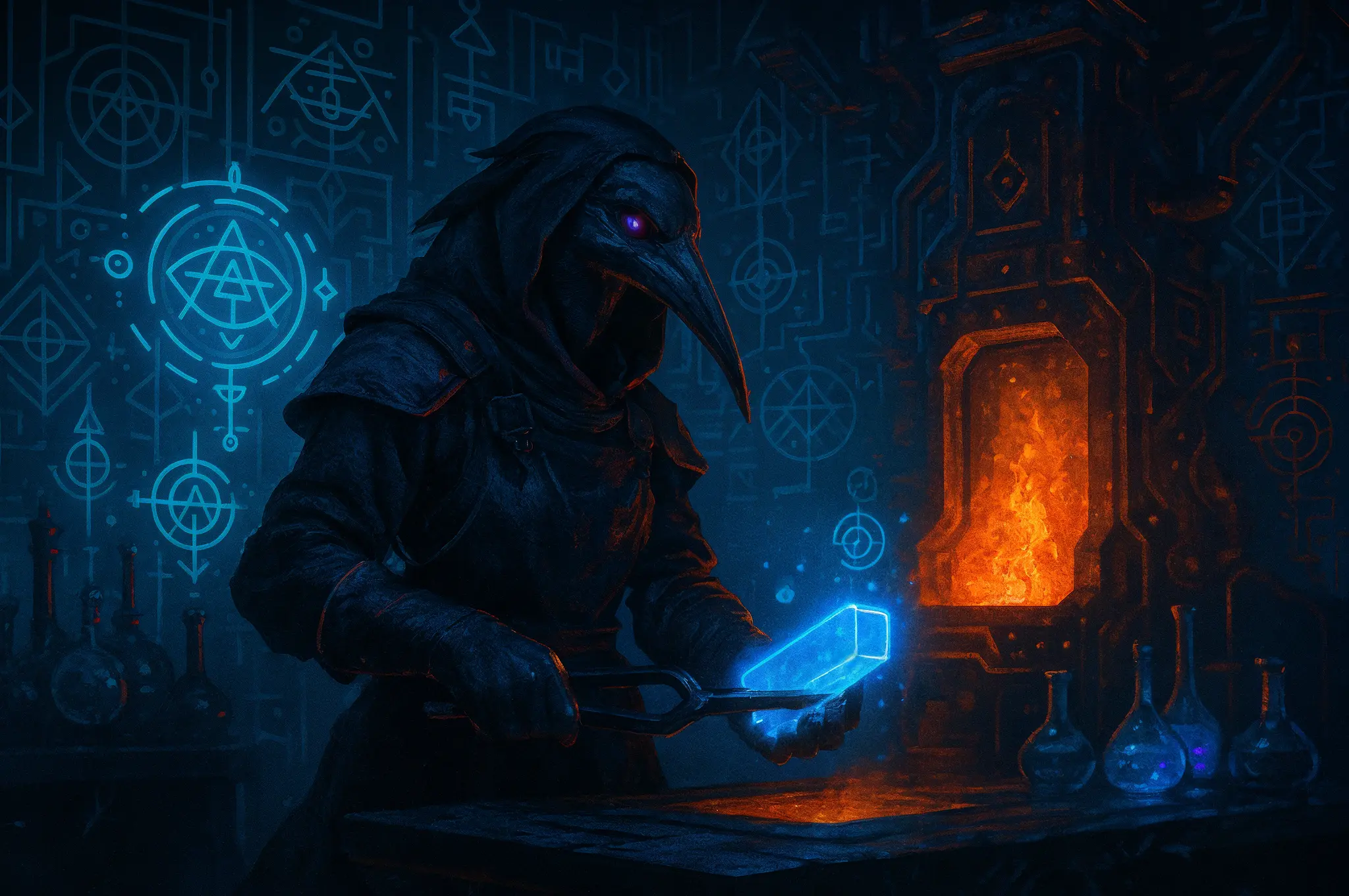 Un magi-herrero admite que “una aleación de lunargenta que amortigua hechizos puede cambiar el curso de una guerra” (Crédito: Kenomitian).