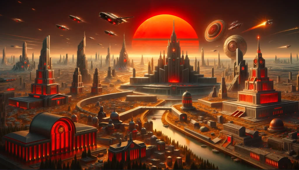 The Socialist State of Sabaoth is based on a Cassette Futurist USSR (parts of Russia, Ukraine, Belarus), drawing inspiration from Soviet Sci-Fi. It is known for its cruel secret police, the Nakhielim of the Tree of Eyes, who use mundane and magical surveillance, chemical brainwashing, forced augmentations, and subliminal epimorphism. It also grants limited elioud rights to virtual beings. Its official language is Ruya (Russian) using the Cyrillic script, and its system is Communism. The capital is Authadia (Moscow, Russia). It has extra-planetary colonies on Hayyi Rabbi, Uthras, and Horos, and various extra-dimensional colonies. Peshat, Remez, and Derash are regular citizens (higher Pardes equals higher taxation), while Sod are placed in «right jobs» based on their Kochos hanefesh. Partzufim are brainwashed, outfitted with «kill-switches,» biologically and cybernetically enhanced, and kept as «secret weapons«. Drakes/Drakainas and Archangels are Partzufim, Cambions face the death penalty. Cryptids/monsters are mage property, homunculi/golems/familiars are state property, and epimorphism is only for government officials. Mundane AIs have full personhood with temporary guardians, while uplifted/parasapient tlavati are government property. Only state-sponsored necromancers can truck with ghosts and corpses of elioud, including ghost creation. Only government officials can practice Hypnosis, Eliomancy, Possession, Panopticon, Mindscaping, and Epimorphism on elioud. Emmakha citizens are treated as Derash. Slavery is abolished, except for concentration camps. Megacorporate extraterritoriality is unrecognized, but Hadit Industries, Hoor-paar–kraat, Hurtaly Corporation, Mendes International, and YEQON have a presence. Sabaoth is invading Thule, Sophia, Ariouth, and Cyranides while engaged in a hot war against Abbā də Rabbūṯā and a cold war against Ouroboros, and facing a civil war in its own southwestern region. Its Economic-Military Ranking is 5. Its flag is a scarlet banner with a golden double-headed eagle holding a hammer and sickle. Its anthem/slogan is “Song of the Workers”.