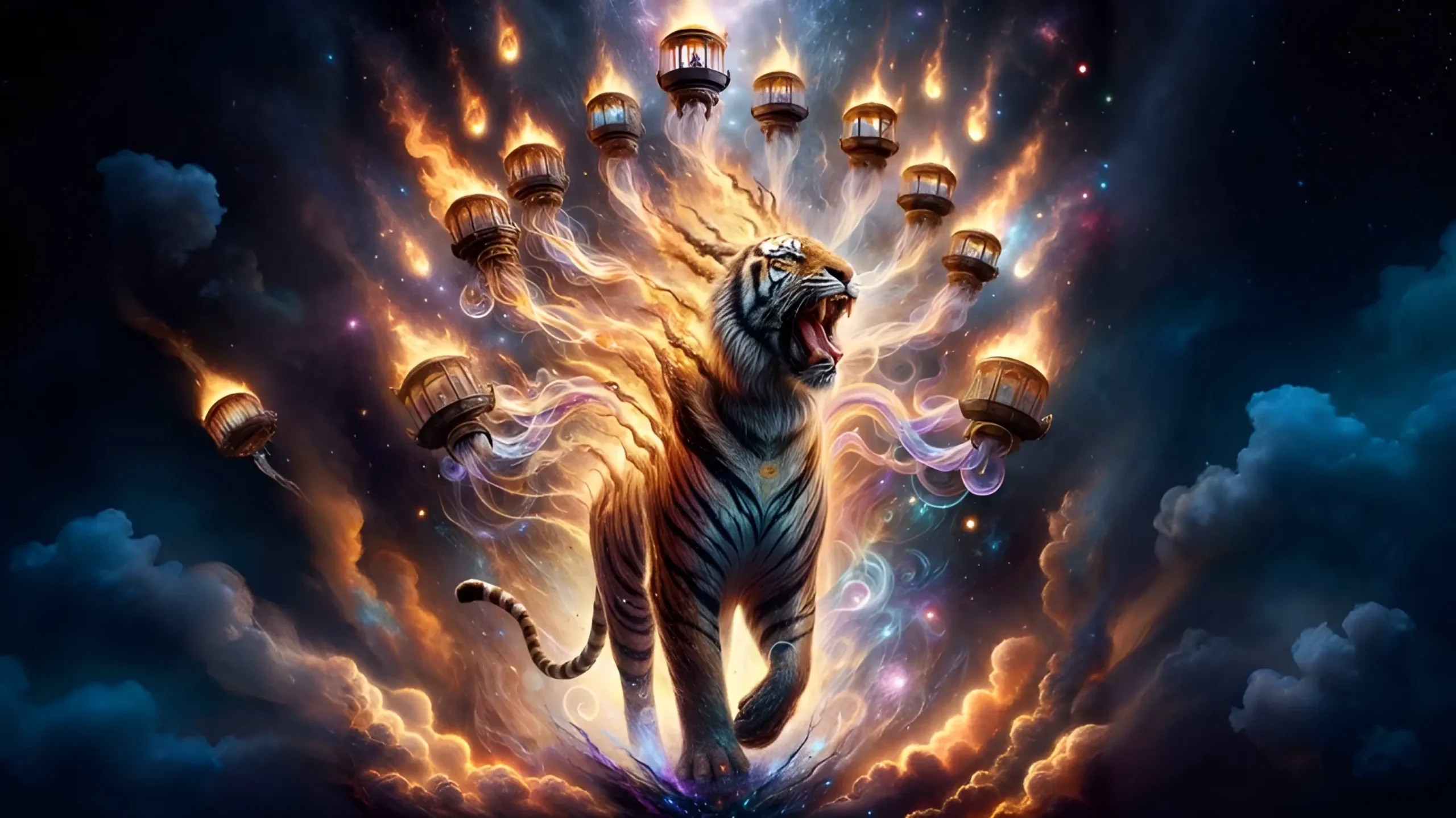 Merkavah (hembra)—también Quintaesencia y Trueno Adamantino—es la Guardián del Oeste. Mundanamente es energía; supramundanamente, una tigresa de papel que arde y se rehace sin fin entre chispazos, circundada por siete carros de vidrio. Alterna entre cortesana somnolienta y velocista frenética, cómica y dispersa. En La Oscuridad entre las Estrellas, su ídolo irradia, al azar, oleadas de calor abrasador o frío glacial.