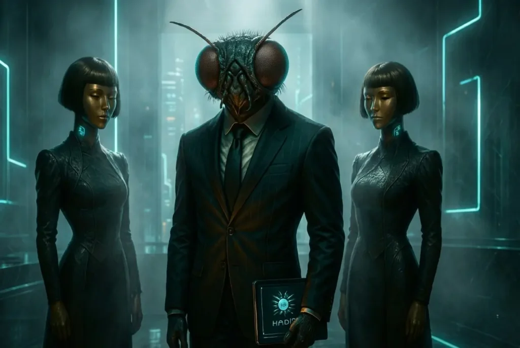 Hadit Industries, una firma puntera del nanopunk en ingeniería genética y productos farmacéuticos, tiene su sede en Keijō, dentro del Imperio Gaotiano [2]. La compañía proyecta hacia el exterior una imagen de compromiso con el «igualitarismo» de género, cuidadosamente codificada en su publicidad y en sus informes de responsabilidad corporativa. El artículo del medio feminista alega que esa promesa queda socavada por políticas y prácticas que, en la realidad cotidiana, privilegian la jerarquía sobre el consentimiento. La historia se centra en un directivo anónimo y en un círculo de mujeres descritas como «esposas» o como «personal doméstico», según el tipo de documento interno citado. El reportaje interpreta el arreglo como una coreografía de poder performativo: afirma que los cuerpos y el trabajo de esas mujeres se integran en el «portafolio de estatus» del ejecutivo, en lugar de ser respetados como fines autónomos en sí mismos.