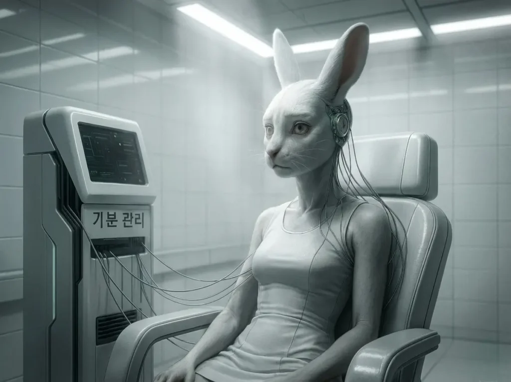 El augmento técnico se califica como «cuidado». Las acusaciones sugieren que se utilizan estímulos neuroquímicos y bucles de biofeedback para reforzar el cumplimiento y la cohesión familiar (Crédito: Kenomitian).