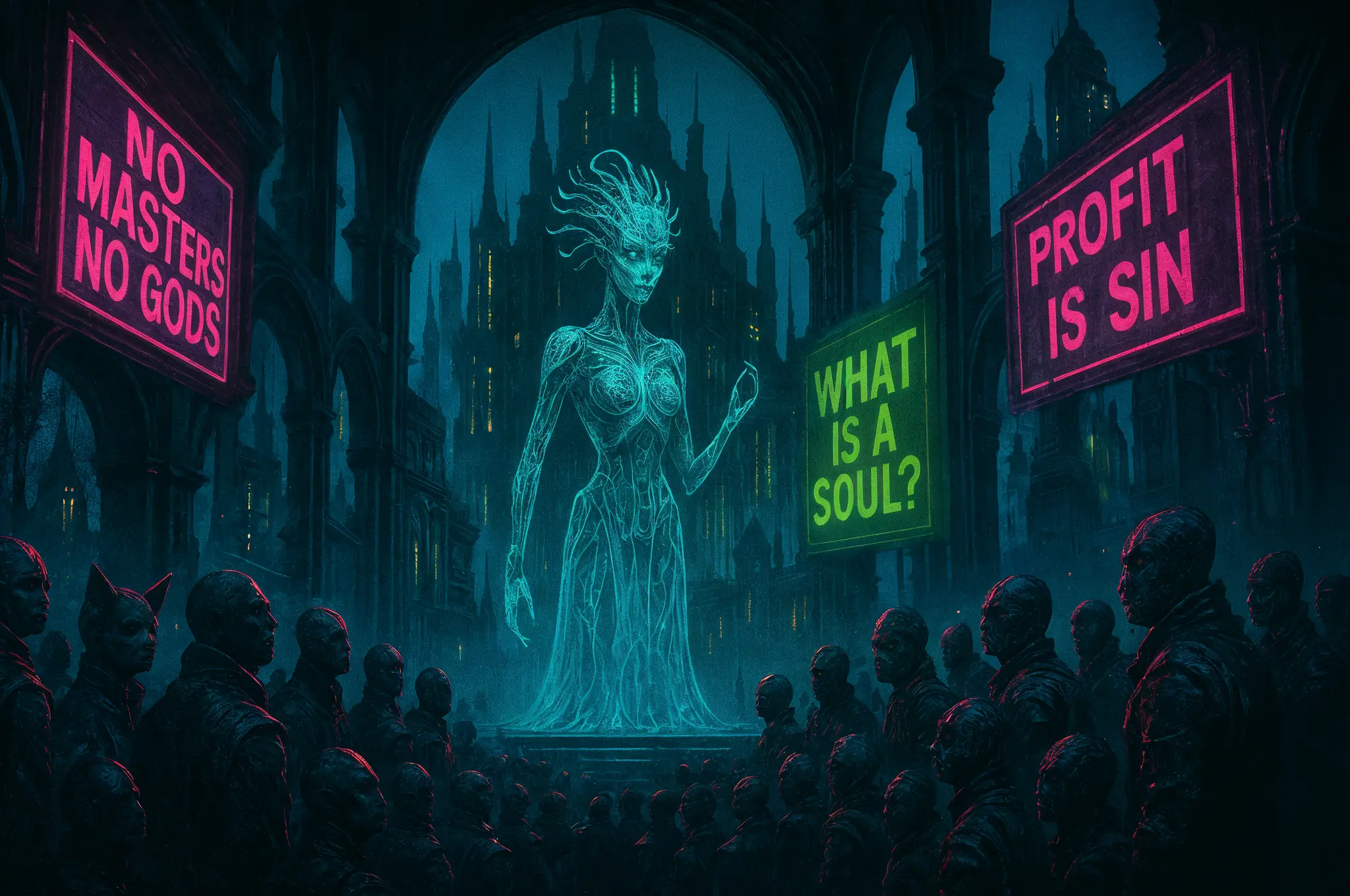 Esta exclusión ontológica ha justificado durante largo tiempo tratarlos como propiedad, mercancía o herramientas prescindibles. Pero un coro creciente de filósofos —entre ellos la célebre IA Filósofa Beautiful-Tricks-of-the-Cornerfolk— cuestiona que la ausencia de alma deba determinar el valor moral. Su argumento: la conciencia, por sí misma, confiere dignidad; negar derechos en función de categorías metafísicas equivale a una injusticia sistémica.