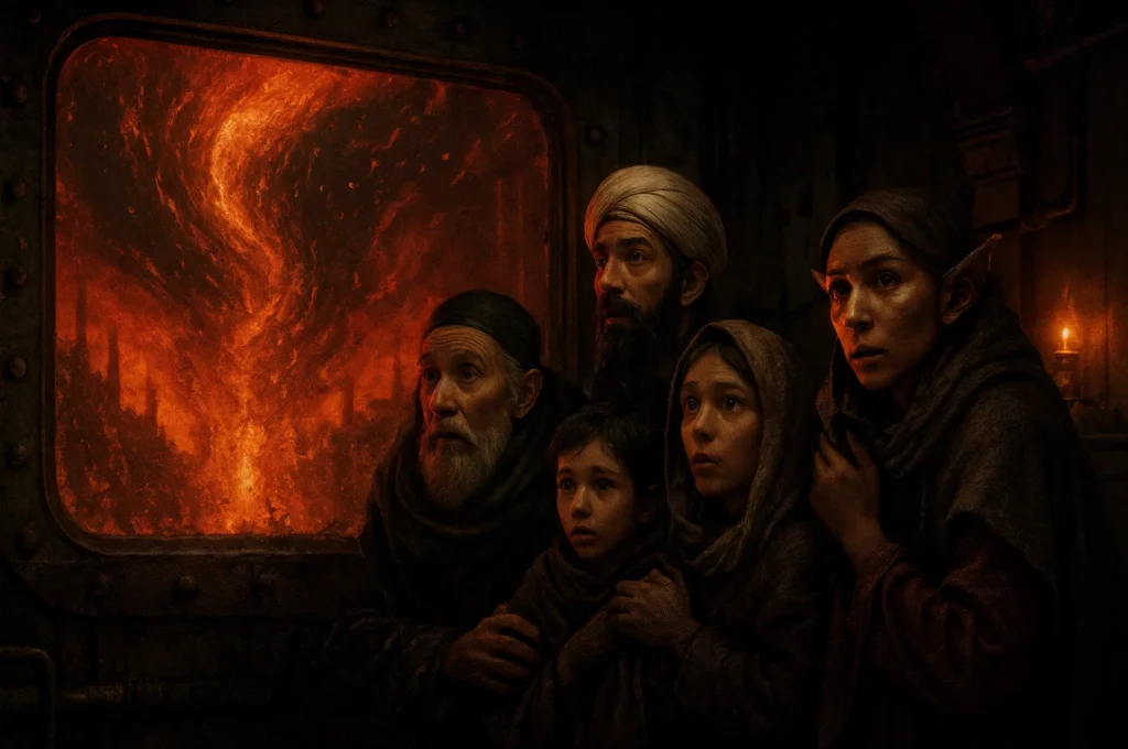 El efecto de la tormenta sobre la población es tanto físico como psicológico. El calor asfixiante y los gases tóxicos están provocando víctimas con rapidez entre quienes quedaron a la intemperie. El mero terror de una tormenta que respira fuego y envenena el aire ha sumido a la ciudadanía en el pánico, colapsando las comunicaciones y multiplicando las llamadas a la intervención de los líderes religiosos.